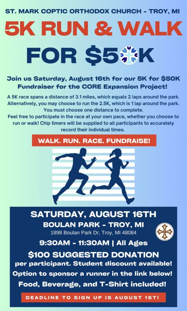 Join us to learn more about the Coptic Language, Hymns, and Rites of our Church, starting at 6:30 PM for ages Pre-K to High School.